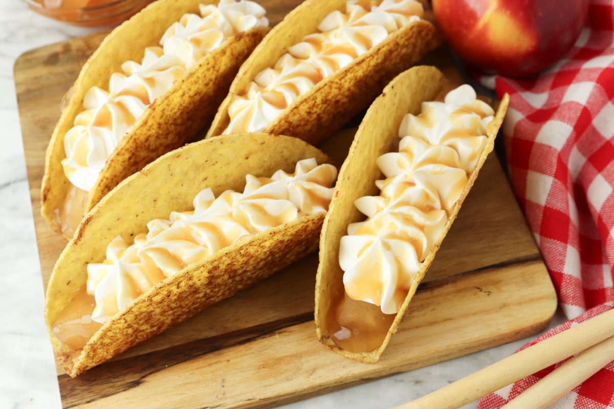 A delightful twist on the traditional apple pie, this easy dessert taco recipe is sure to become a family favorite taco night dessert!