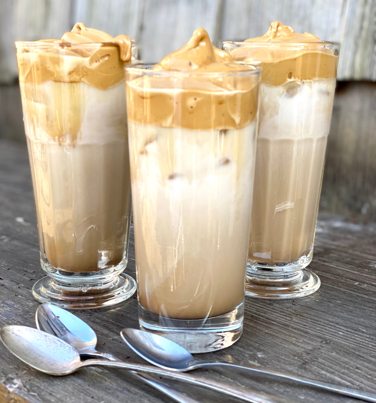 The newest trend around, Dalgona Whipped Coffee, is a refreshing drink that’s so easy to make with instant coffee, sugar, hot water and almond milk over ice.