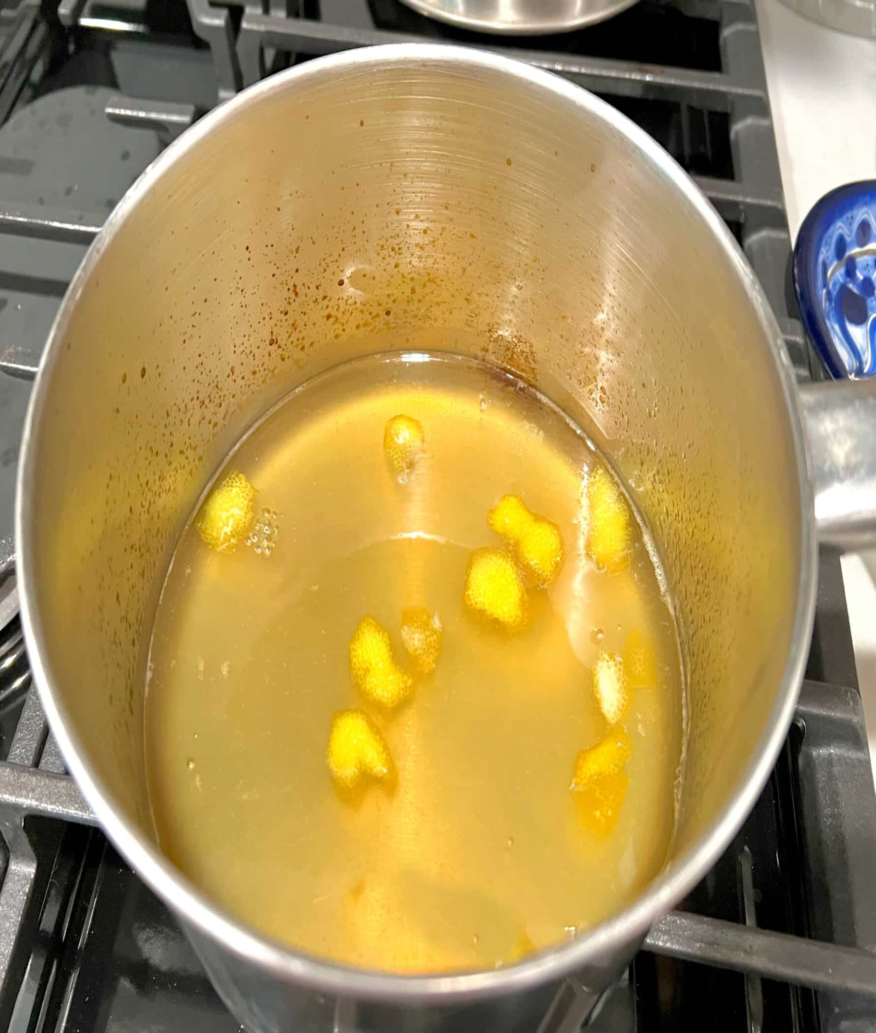 - Add the lemon rinds to the saucepot.